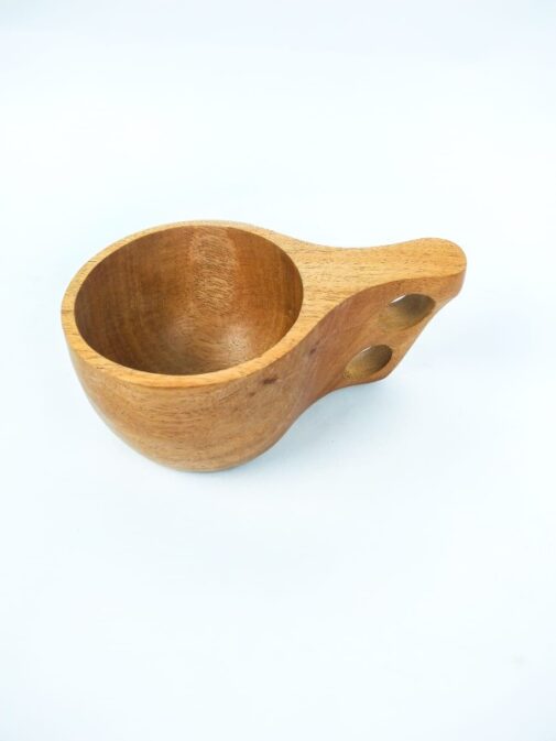 Cangkir kayu ala Jepang yang memancarkan keindahan sederhana dan tradisional, terbuat dari kayu mahoni. Desain menarik perhatian dengan dua lubang disamping yang berfungsi sebagai pegangan untuk memudahkan para penikmat minuman. Cangkir ini membawa nuansa elegan dan keanggunan khas seni tradisional Jepang. Bahan kayu mahoni memberikan warna yang hangat dan kaya pada cangkir, dengan serat dan pola alami kayu yang menjadi bagian dari daya tarik desain. Bentuknya yang sederhana namun elegan mencerminkan estetika Jepang yang menyukai kesederhanaan dan keindahan alami. Dua lubang disamping cangkir tidak hanya memberikan elemen dekoratif, tetapi juga fungsi ergonomis sebagai pegangan yang nyaman. Desain ini memberikan sentuhan khusus pada cangkir, menggabungkan kepraktisan dan keindahan dalam satu wadah. Cangkir kayu ala Jepang dengan desain dua lubang sebagai pegangan ini adalah pilihan yang memikat untuk mereka yang menghargai seni tradisional Jepang dan mencari pengalaman minum yang unik.