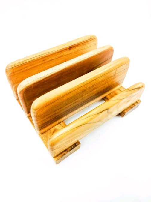 Dengan ukuran 20,8×16,5×9,8cm, dudukan ini dirancang untuk menampung berbagai ukuran talenan dengan sempurna, menjaga talenan Anda tetap tegak dan mudah diakses. Desainnya yang kokoh memastikan bahwa talenan tidak mudah tergelincir atau jatuh, sementara tampilan kayu jati yang halus memberikan kesan mewah dan alami.