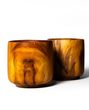 Gelas kayu jati sering dihargai karena keindahan alaminya, dan penggunaannya untuk penyajian kopi dapat memberikan nuansa alami dan tradisional dalam menikmati minuman kopi. Produk semacam ini sering dijual sebagai barang hias atau suvenir yang mencerminkan budaya dan kekayaan alam Indonesia, serta dapat menjadi tambahan menarik untuk pecinta kopi yang menghargai produk-produk tradisional.