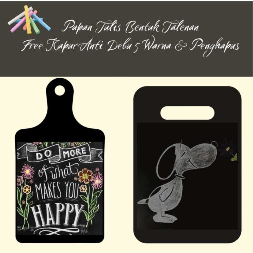 Dengan ukuran yang pas di 17x32cm, papan tulis ini mudah dibawa ke mana-mana, cocok untuk menulis catatan, quotes inspiratif, atau sekadar doodling. Pegangannya yang ergonomis membuatnya mudah digenggam, sementara lubang kecil di ujungnya memungkinkan papan ini digantung dengan mudah di dinding atau di pintu kamar.
