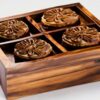 (Mooncake Box)Tempat Penyimpanan Makanan Kotak Kue Bulan Kayu Jati 4 Bagian 22,5 x 22,5 x 8,5 cm