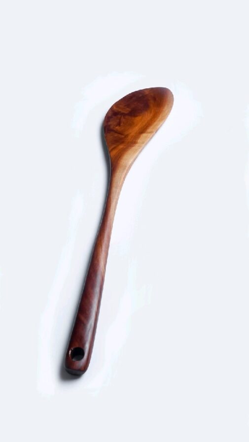 Bentuk spatula yang flat sangat nyaman digunakan untuk menumis ataupun memasak omellete pegangan berbahan kayu tidak menghantar panas, sehingga nyaman dalam genggaman.