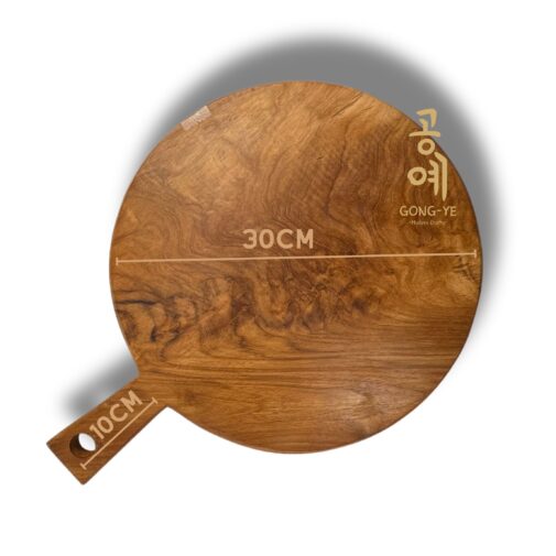 Elegantly handcrafted from solid wood, this 30 cm round board with a total length of 40 cm (including handle) is perfect for serving, slicing, or styling your table. A timeless piece that blends function and natural beauty. 🌿