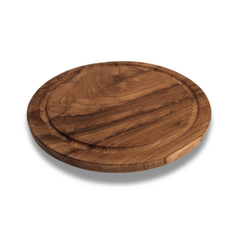 A 30cm diameter, 1,3 cm thick chopping board made from premium solid teakwood with stunning natural wood grain. Multipurpose – use it as a chopping board, heat-resistant trivet, or a serving board.
