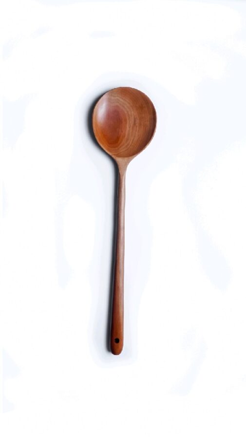 Spatula kayu bundar sangat berguna dalam berbagai jenis masakan dan dapat digunakan untuk membalik dan mengangkat makanan dengan lembut tanpa merusaknya. Ini adalah alat yang sering digunakan dalam dapur dan merupakan pilihan yang umum dalam memasak. Pastikan untuk merawat spatula kayu dengan baik untuk memastikan ketahanan dan kebersihannya dalam jangka panjang.