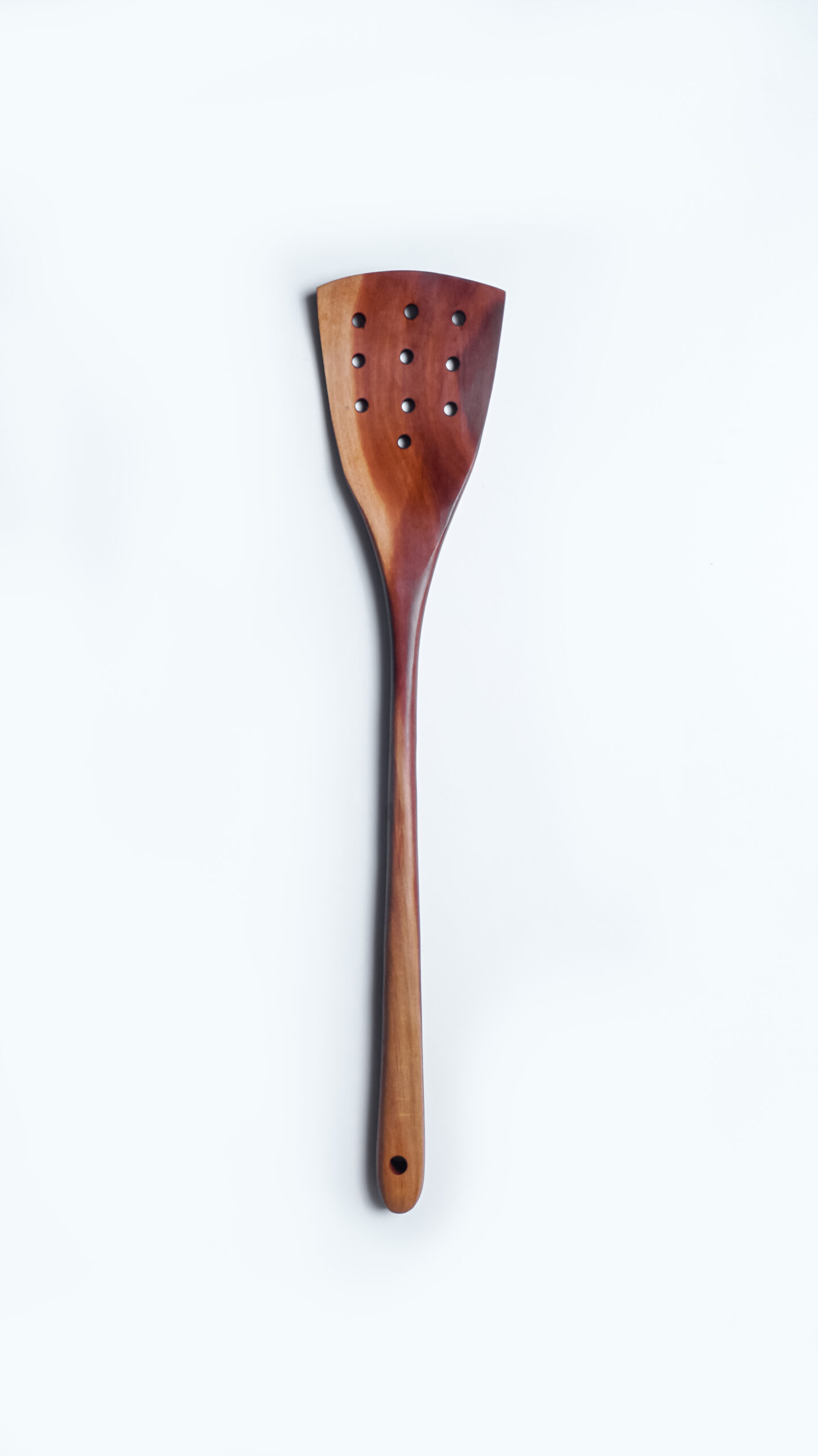 Bentuk spatula yang flat sangat nyaman digunakan untuk menumis ataupun memasak omellete pegangan berbahan kayu tidak menghantar panas, sehingga nyaman dalam genggaman.