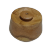 Toples yang memiliki desain yang kompak dengan diameter sekitar 12 cm dan tinggi sekitar 7,5 cm. Terbuat dari kayu, toples ini menampilkan warna kayu yang hangat dan dapat memiliki serat kayu yang terlihat pada permukaannya, memberikan tampilan yang alami. Dengan ukuran yang relatif kecil, toples ini cocok untuk menyimpan berbagai macam barang kecil seperti kacang-kacangan, rempah-rempah, atau mungkin permen. Desainnya yang sederhana membuatnya mudah diintegrasikan dalam berbagai dekorasi dapur atau ruangan lainnya.
