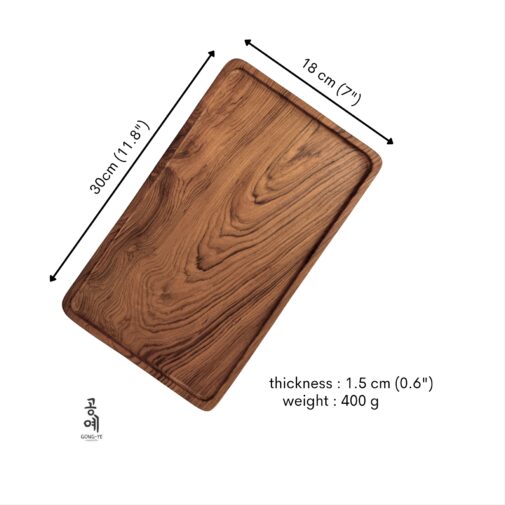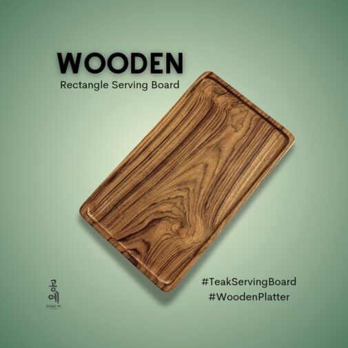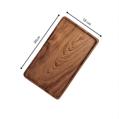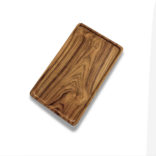 Crafted from a single piece of solid teak wood with no joints, this rectangular serving board brings out the stunning natural grain of teak. Perfect for serving appetizers, sushi, pastries, or as a rustic food styling prop.