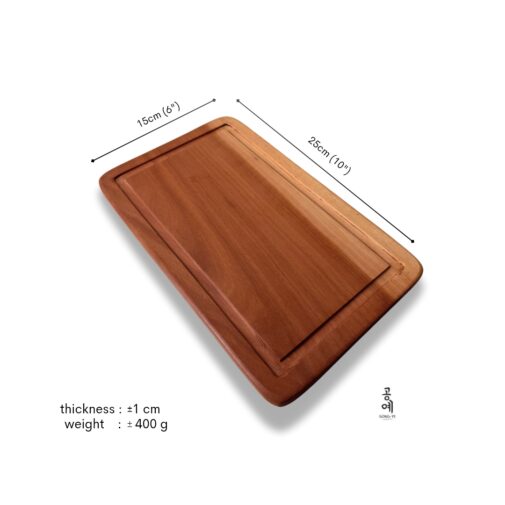 Measuring 15×25 cm with a 1 cm thickness, the SerraCraft Board is more than just a cutting surface โ itโs a piece of natural artistry. Made from one solid wood sapodilla wood without, this board embodies beauty, durability, and function in one elegant form.