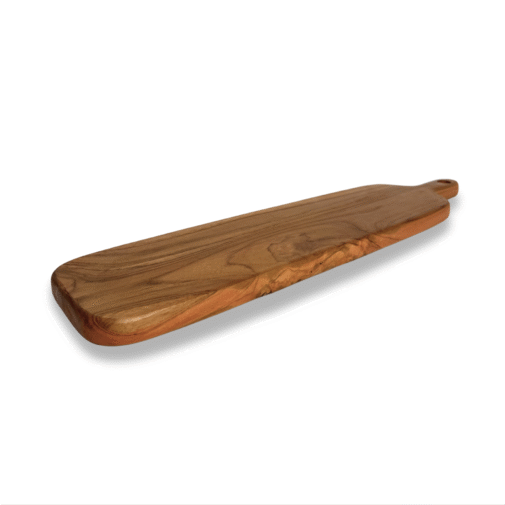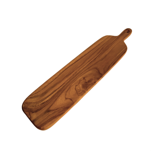 With its 50 cm length and slim 12 cm width, this handcrafted wooden solid teak board is perfect for serving baguettes, cheese assortments, sushi rolls, or desserts in style. Its organic shape and rich grain make every dish look extra special